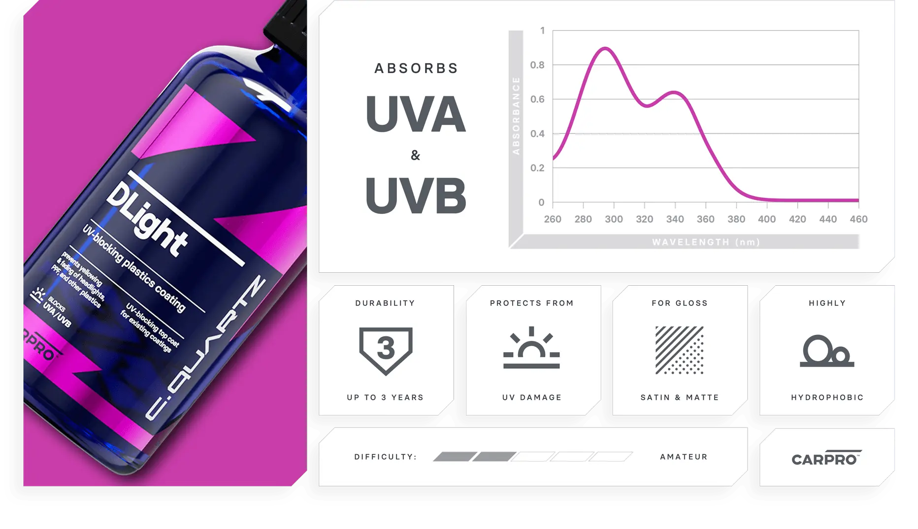 Sin embargo, DLight lleva la protección UV de TODOS los plásticos y PPF a otro nivel.