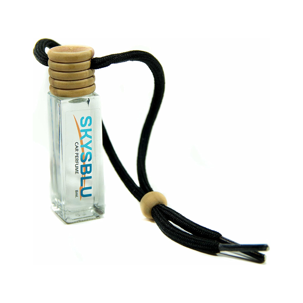SkysBlu viene en un frasco de vidrio tipo perfume, con un corcho de madera y un sello de seguridad que mantiene la fragancia intacta hasta que estés listo para usarla. Simplemente retira el sello plástico, coloca nuevamente el corcho y fíjalo en posición vertical.