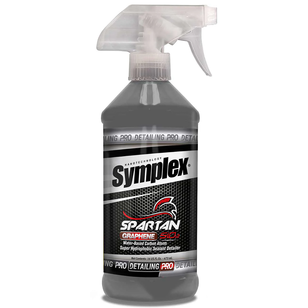 Spartan® Graphene SiO₂ es un sellador de superficies base agua de última generación, formulado con una mezcla sinérgica de dispersión de Grafeno, Dióxido de Silicio y polímeros de entrecruzamiento avanzados. Esta combinación ofrece un acabado de alto brillo, una superficie extremadamente sedosa al tacto y una protección hidrofóbica más duradera. En cuestión de minutos, crea una capa protectora que genera un fuerte efecto de repelencia al agua, un brillo similar a la cera premium y defensa contra contaminantes ambientales.