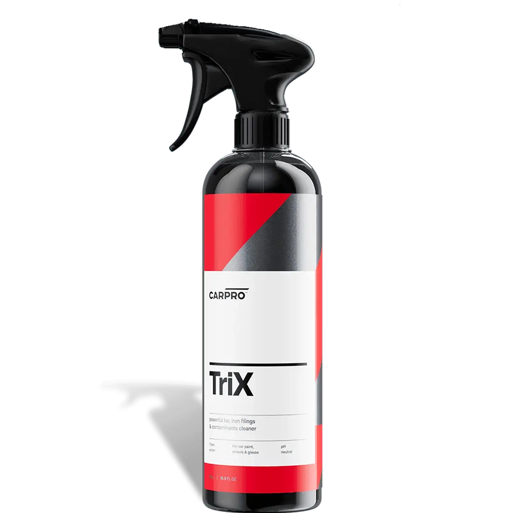 CARPRO TriX reúne tus necesidades de descontaminación del vehículo en un solo producto eficaz. Perfecto para entusiastas con poco tiempo o para detailers profesionales, la fórmula equilibrada en pH (pH 7) de TriX disuelve de forma segura tanto la contaminación orgánica como la inorgánica en un solo paso, optimizando el proceso de detailing y ahorrando tiempo y dinero en servicios completos.